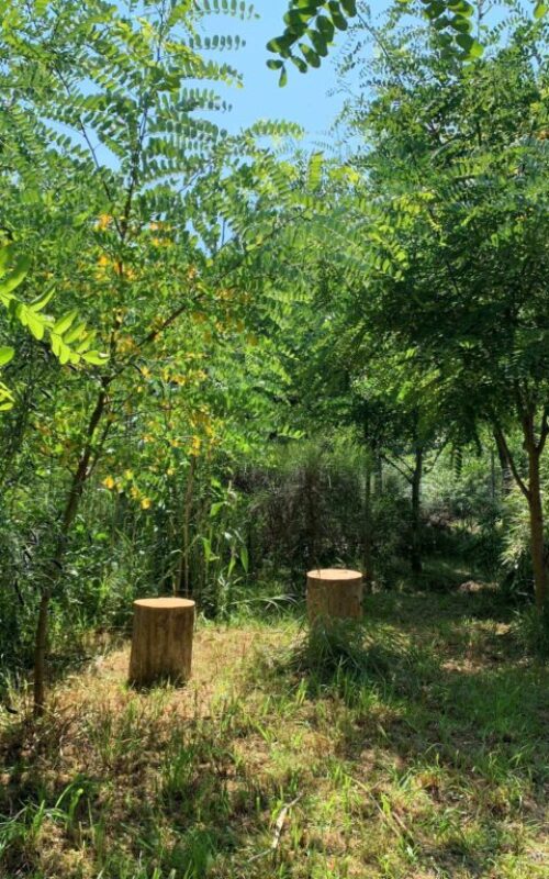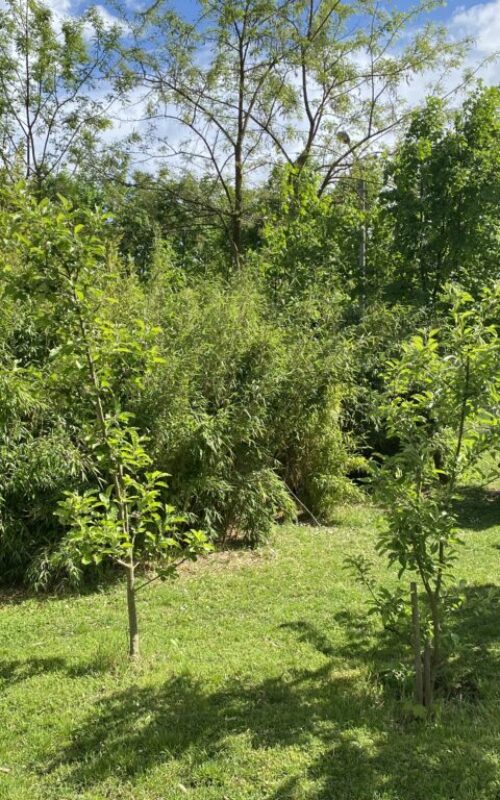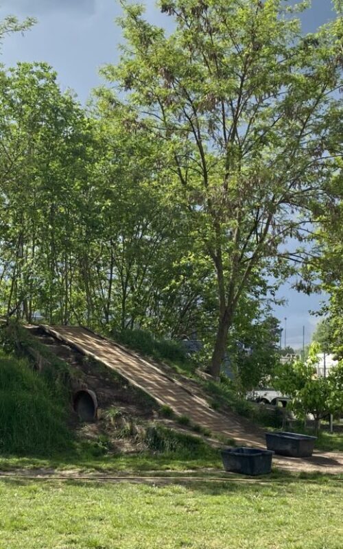 Die naturnahe, teils von Kindern gestaltete offene Fläche, bietet abwechslungsreiche Bewegungs- und Wahrnehmungsmöglichkeiten. Neben der Entfaltung motorischer Fähigkeiten, findet vor allem auch eine Schärfung der Sinne statt.